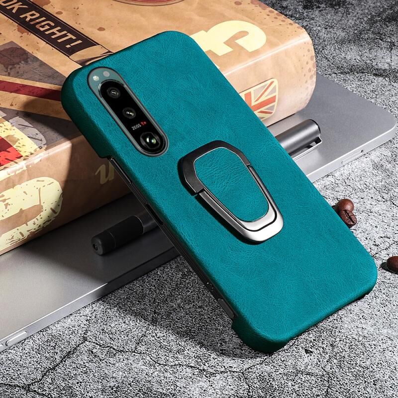 Θήκη τηλεφώνου για Sony Xperia 5 III με δακτύλιο στήριξης από PU (Κυανό)