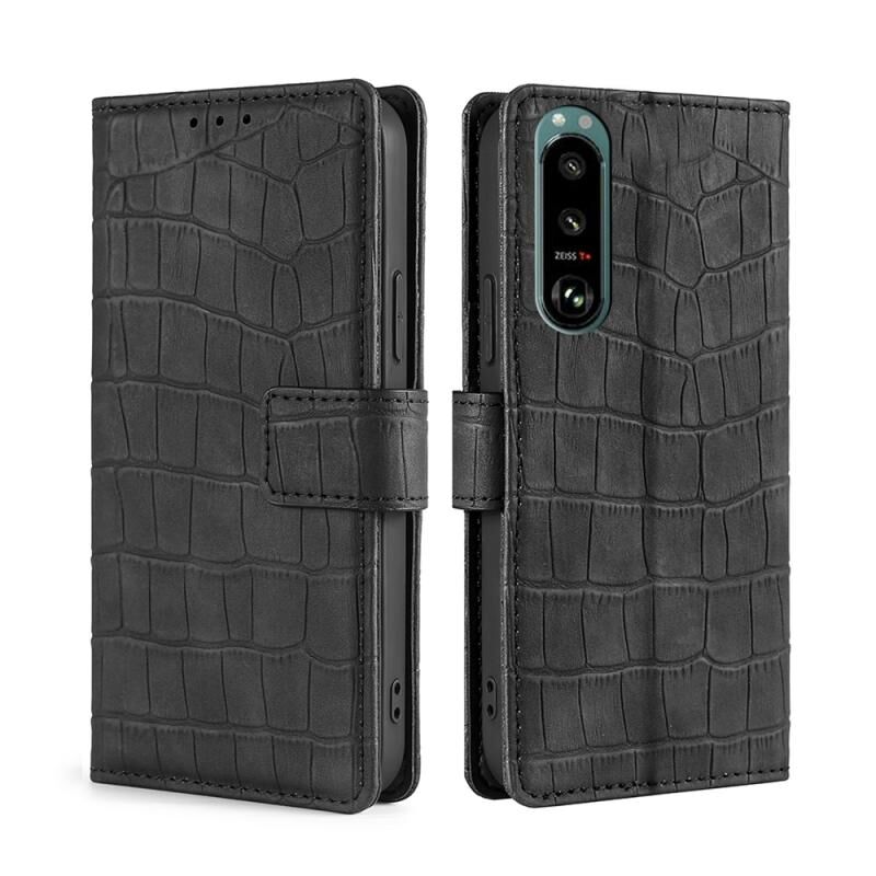 Για το Sony Xperia 5 III Skin Feel Crocodile Texture Μαγνητικό κούμπωμα Οριζόντια Flip PU Leather Case με θήκη & υποδοχές για κάρτες & πορτοφόλι (Μαύρο)