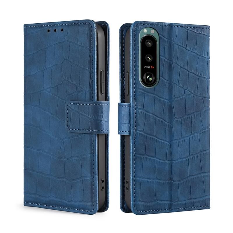 Για το Sony Xperia 5 III Skin Feel Crocodile Texture Μαγνητικό κούμπωμα Οριζόντια Flip PU δερμάτινη θήκη με θήκη & υποδοχές καρτών & πορτοφόλι (μπλε)