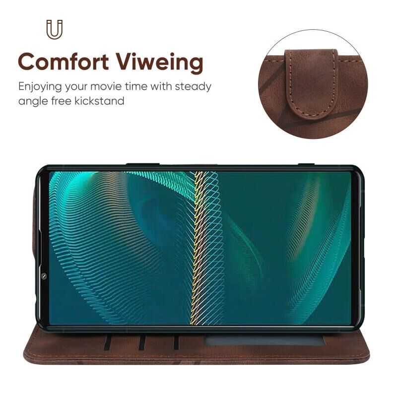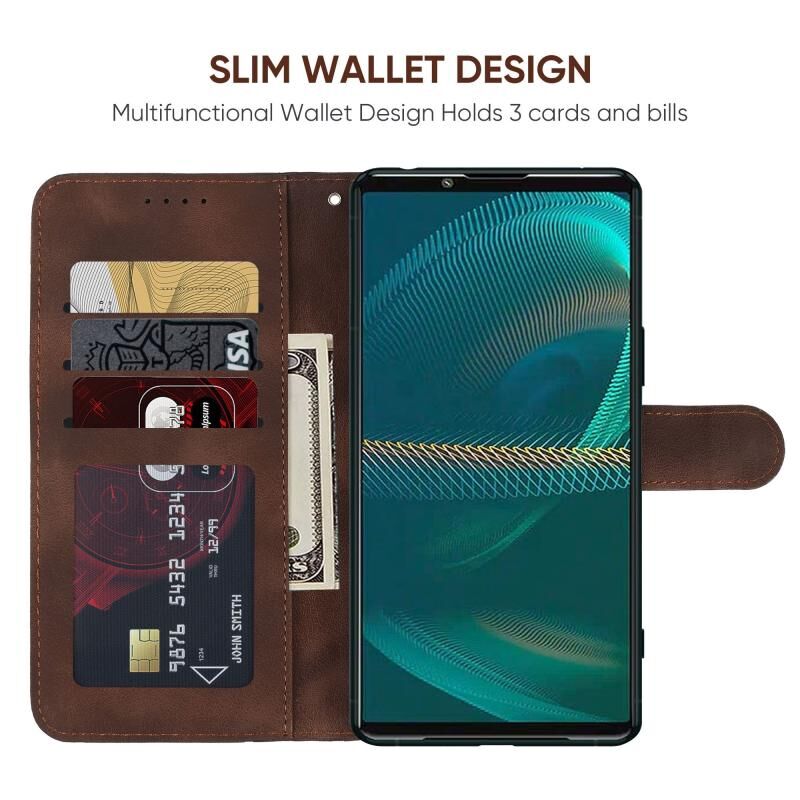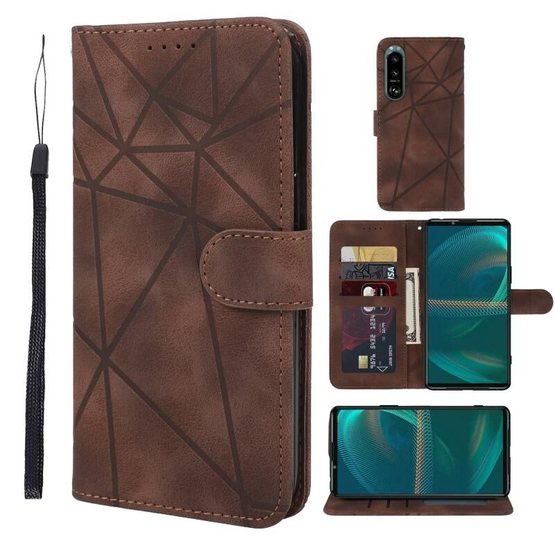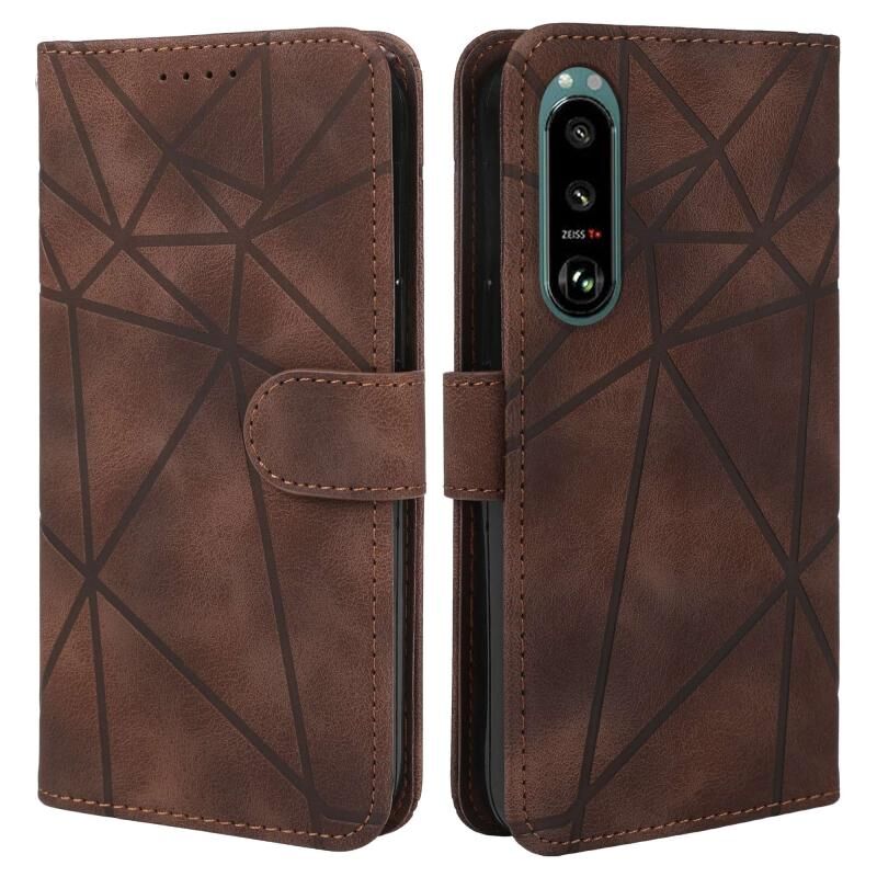 Για το Sony Xperia 5 III Skin Feel Γεωμετρικές γραμμές δερμάτινη θήκη τηλεφώνου (καφέ)