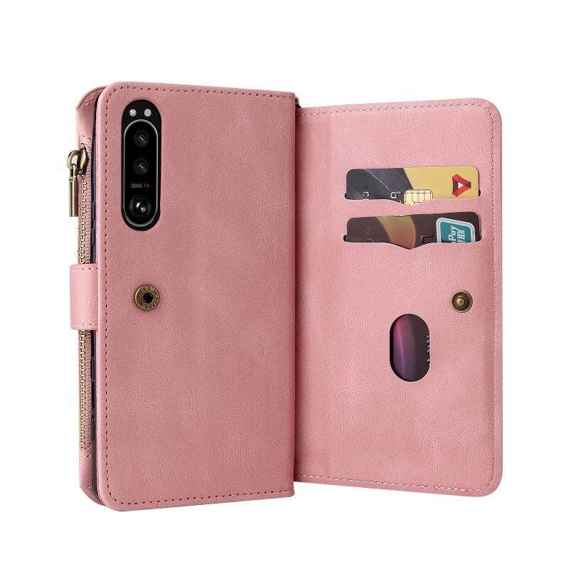 Για Sony Xperia 5 III Skin Feel PU + TPU Οριζόντια Flip δερμάτινη θήκη με θήκη & 15 κάρτες Slot & πορτοφόλι & φερμουάρ τσέπη & Lanyard (ροζ)