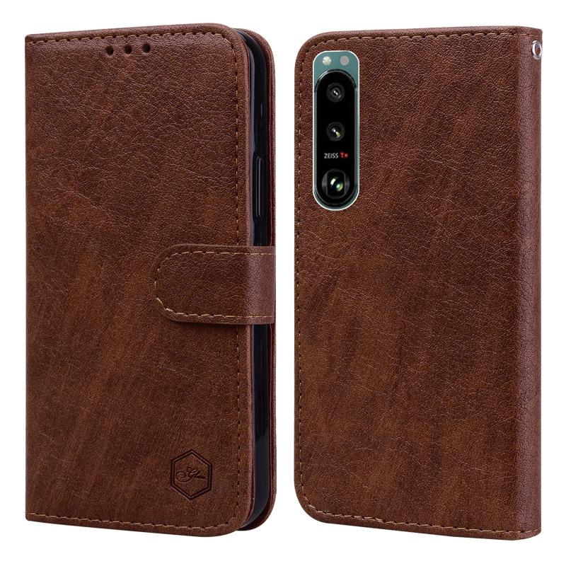 For Sony Xperia 5 III Skin Feeling Oil Leather Texture PU + TPU Phone Case(Brown)