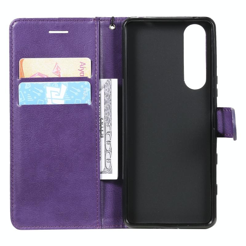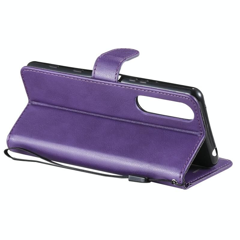 For Sony Xperia 5 III Solid Color Horizontal Flip Protective Leather Case with Holder & Card Slots & Wallet & Photo Frame & Lanyard(Purple)
