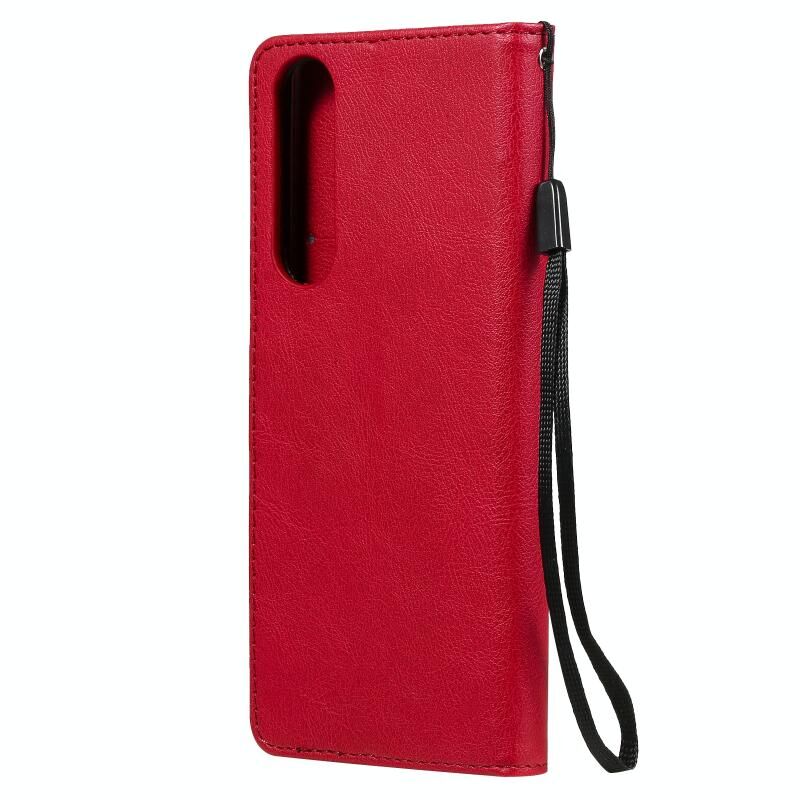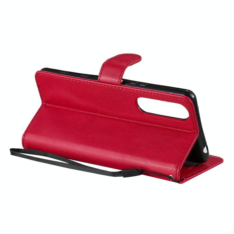 For Sony Xperia 5 III Solid Color Horizontal Flip Protective Leather Case with Holder & Card Slots & Wallet & Photo Frame & Lanyard(Red)