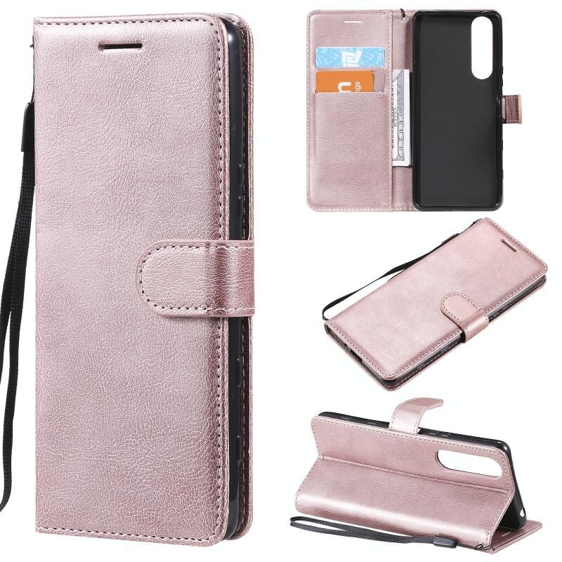 For Sony Xperia 5 III Solid Color Horizontal Flip Protective Leather Case with Holder & Card Slots & Wallet & Photo Frame & Lanyard(Rose Gold)
