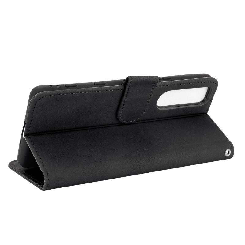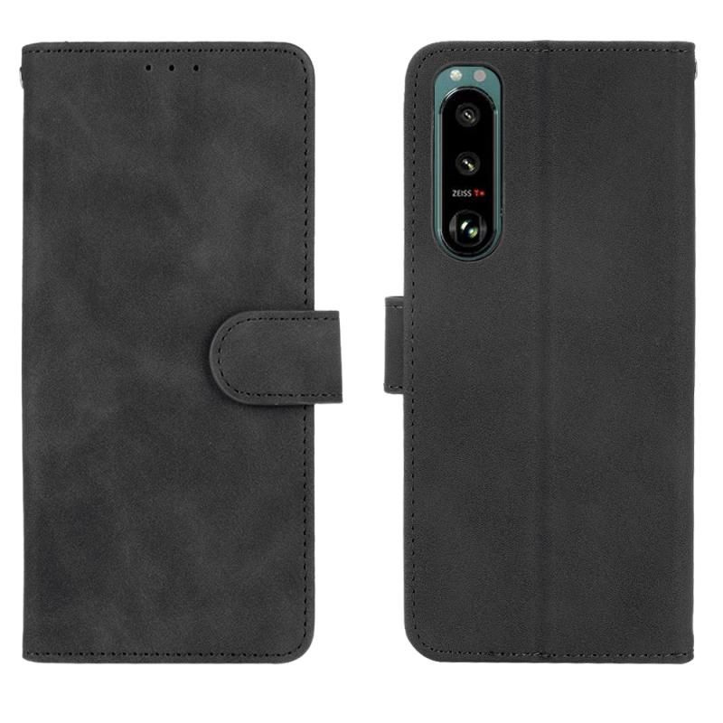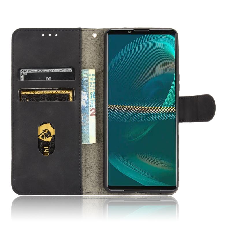 For Sony Xperia 5 III Solid Color Skin Feel Magnetic Buckle Horizontal Flip Calf Texture PU Leather Case with Holder & Card Slots & Wallet(Black))