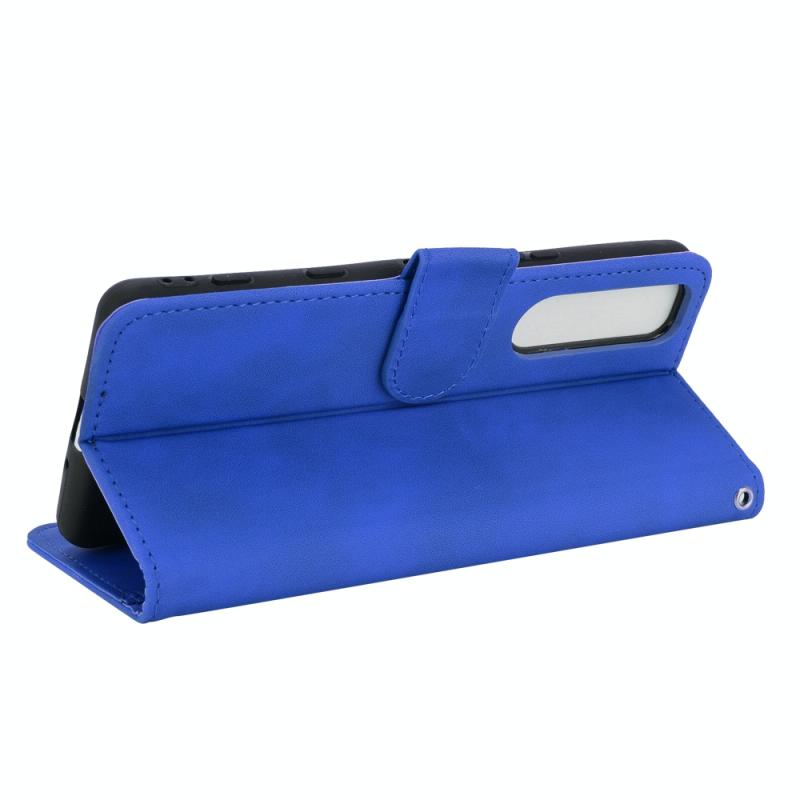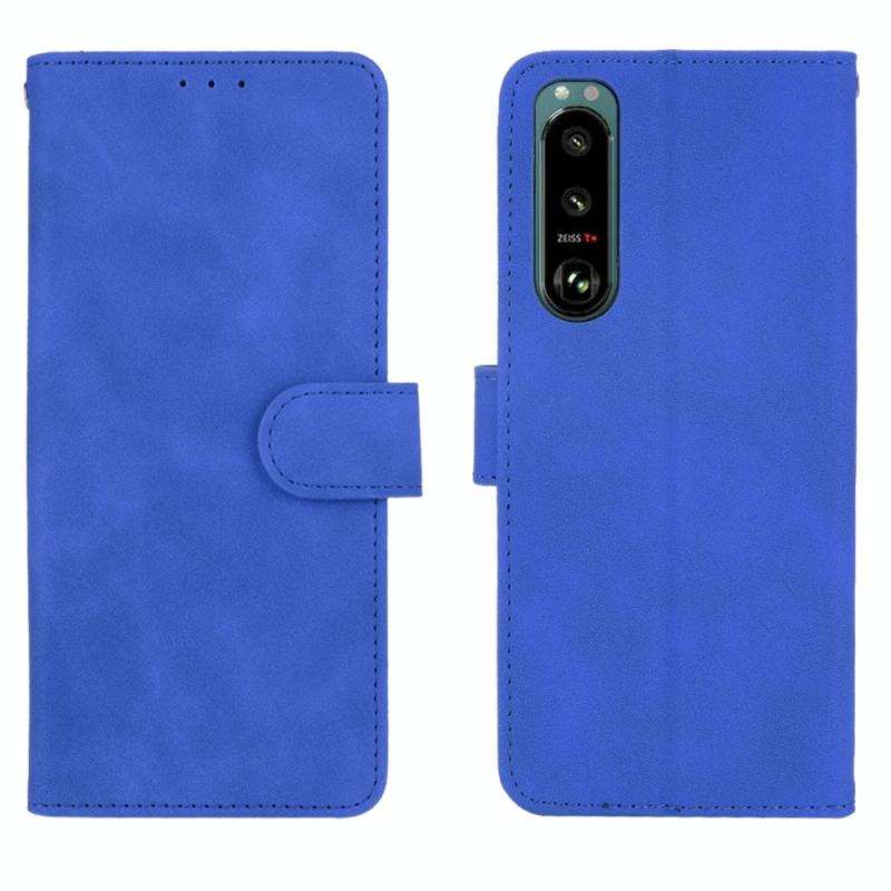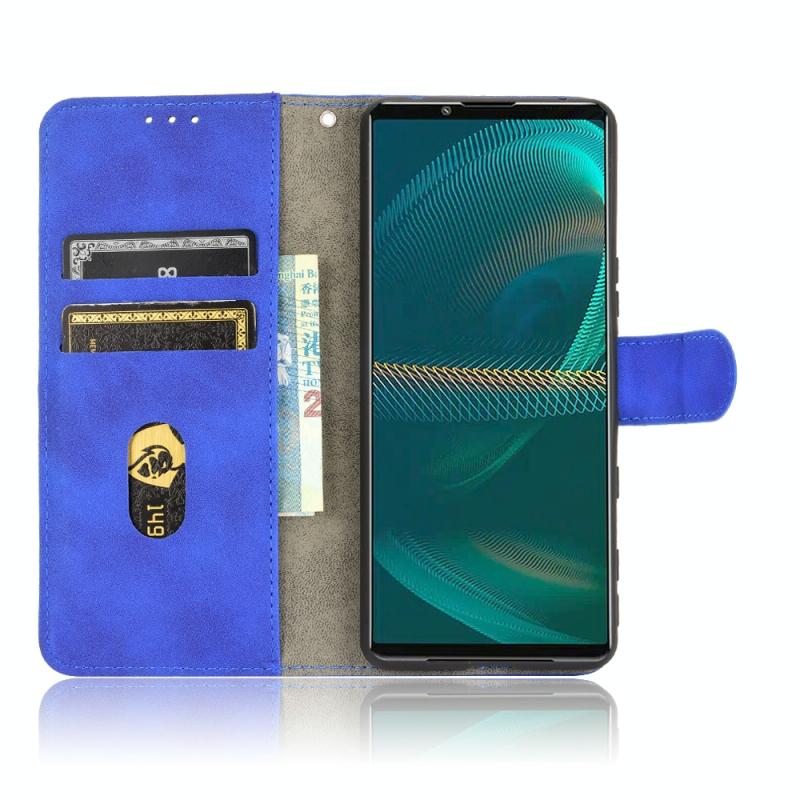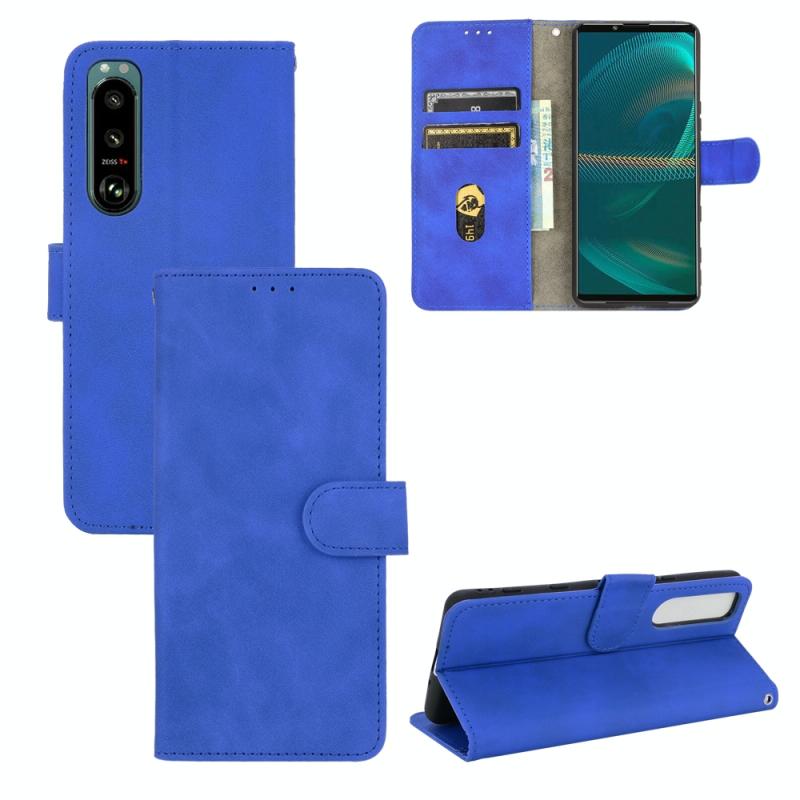 For Sony Xperia 5 III Solid Color Skin Feel Magnetic Buckle Horizontal Flip Calf Texture PU Leather Case with Holder & Card Slots & Wallet(Blue)