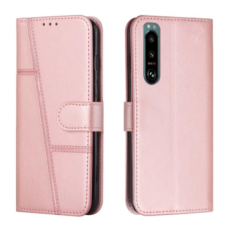 Για Sony Xperia 5 III ραφή μοσχάρι υφή πόρπη δέρμα τηλέφωνο υπόθεση (ροζ)