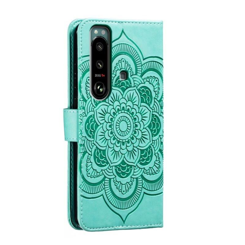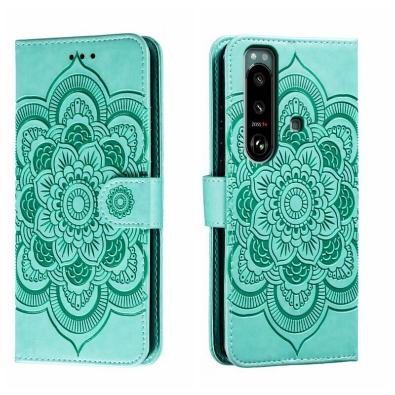 Για Sony Xperia 5 III Sun Mandala ανάγλυφο μοτίβο τηλέφωνο δερμάτινη θήκη (πράσινο)