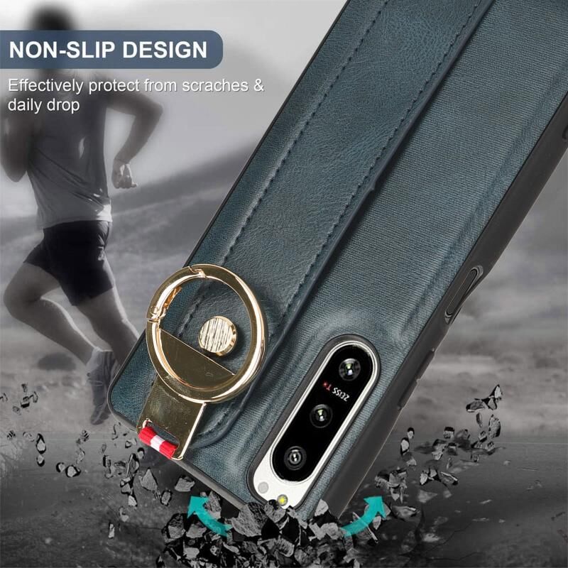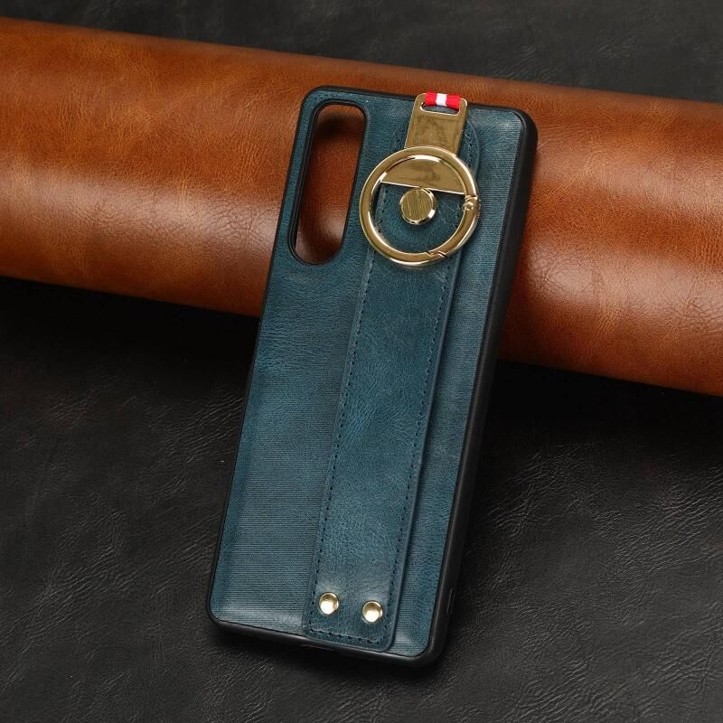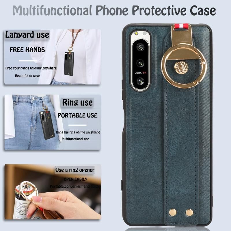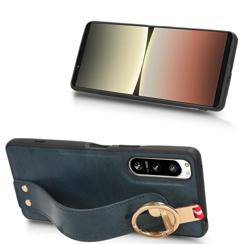 Για Sony Xperia 5 III Wristband δέρμα πίσω υπόθεση τηλεφώνου (μπλε)