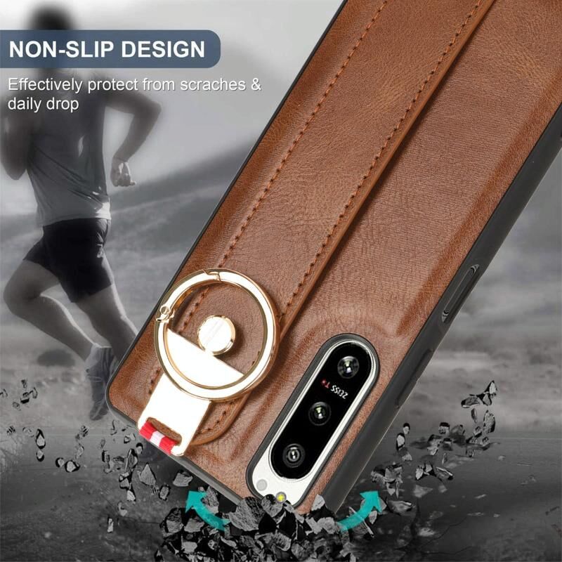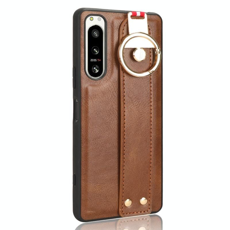 Για Sony Xperia 5 III Wristband δέρμα πίσω υπόθεση τηλεφώνου (καφέ)