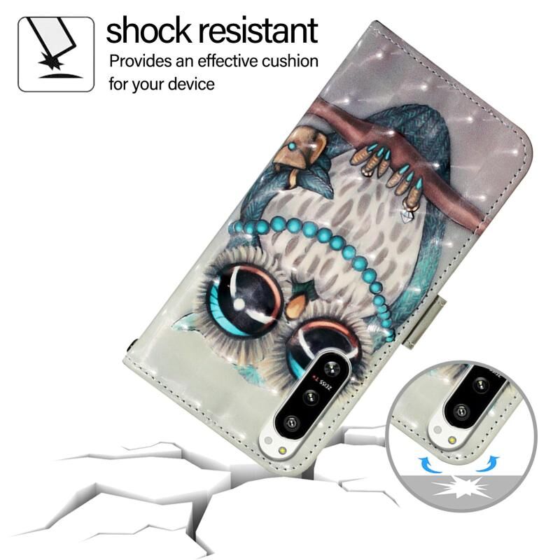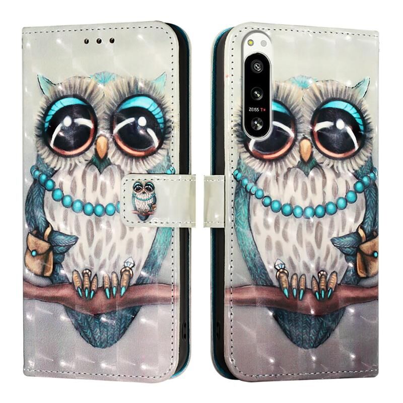 Θήκη τηλεφώνου δερμάτινη με οριζόντια αναδίπλωση και τρισδιάστατη ζωγραφική για Sony Xperia 5 IV (Γκρι Γαλαζοπούλα)