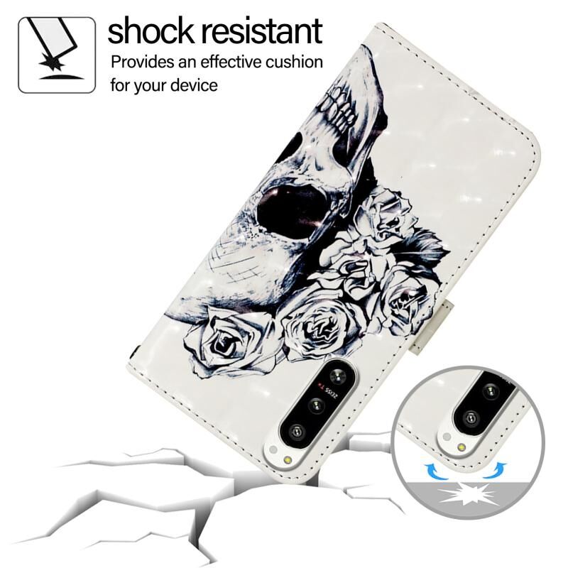 Θήκη τηλεφώνου δερμάτινη με οριζόντια αναδίπλωση και τρισδιάστατη ζωγραφική για Sony Xperia 5 IV (Κρανίο)