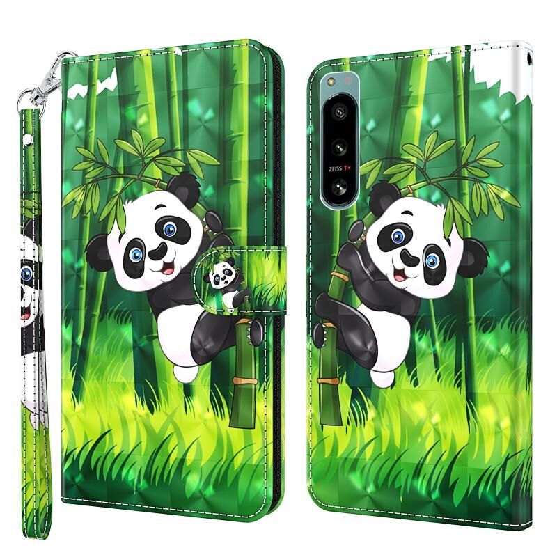 Θήκη κινητού τηλεφώνου για Sony Xperia 5 IV, TPU + PU με σχέδιο 3D ζωγραφικής (Πάντα που σκαρφαλώνει σε μπαμπού)