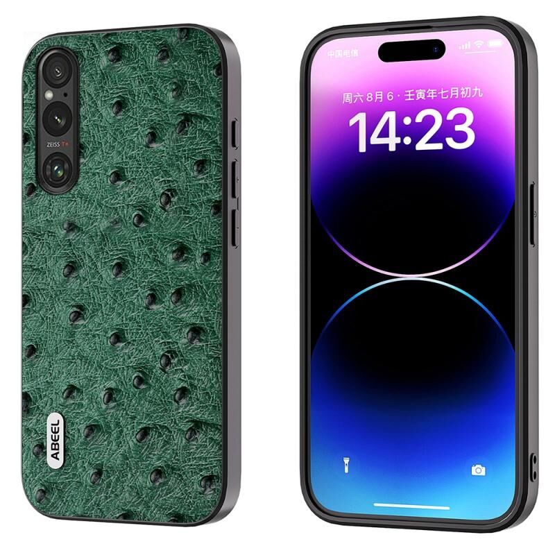 Θήκη τηλεφώνου από γνήσιο δέρμα στρουθοκάμπου για Sony Xperia 5 IV ABEEL (Πράσινο)