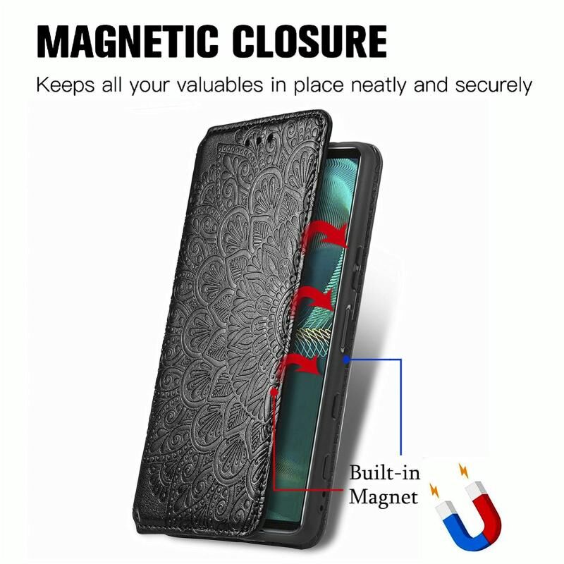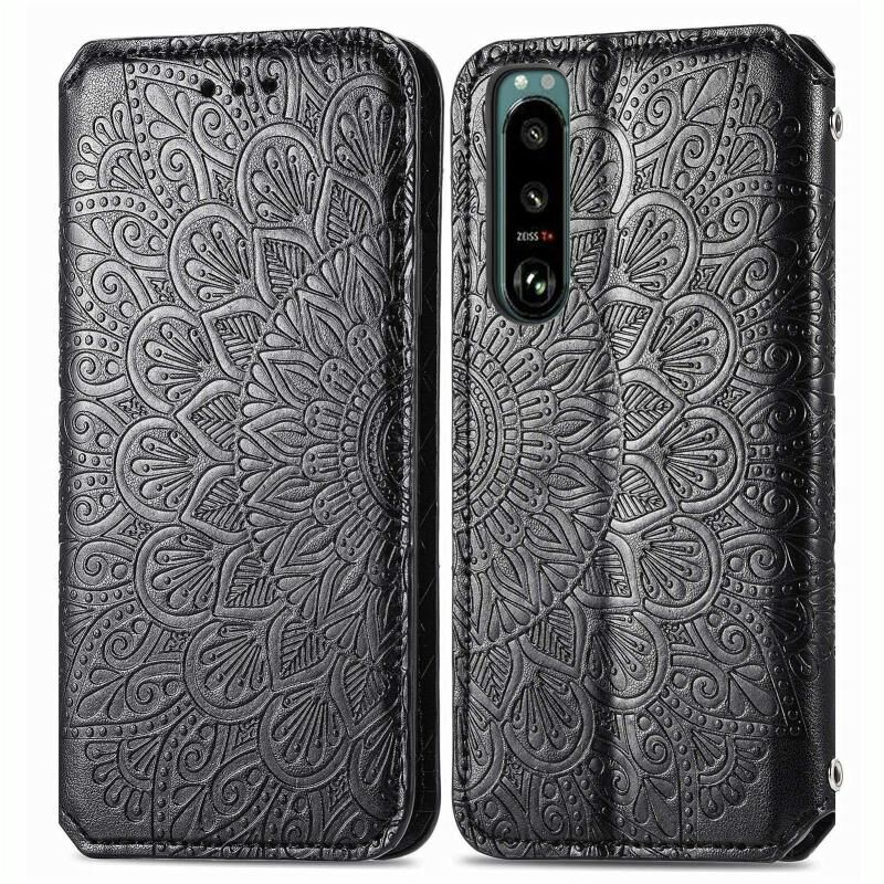 Για Sony Xperia 5 IV Blooming Mandala ανάγλυφη μαγνητική δερμάτινη θήκη τηλεφώνου (Μαύρο)