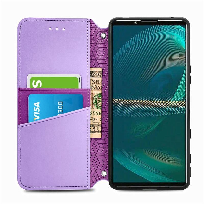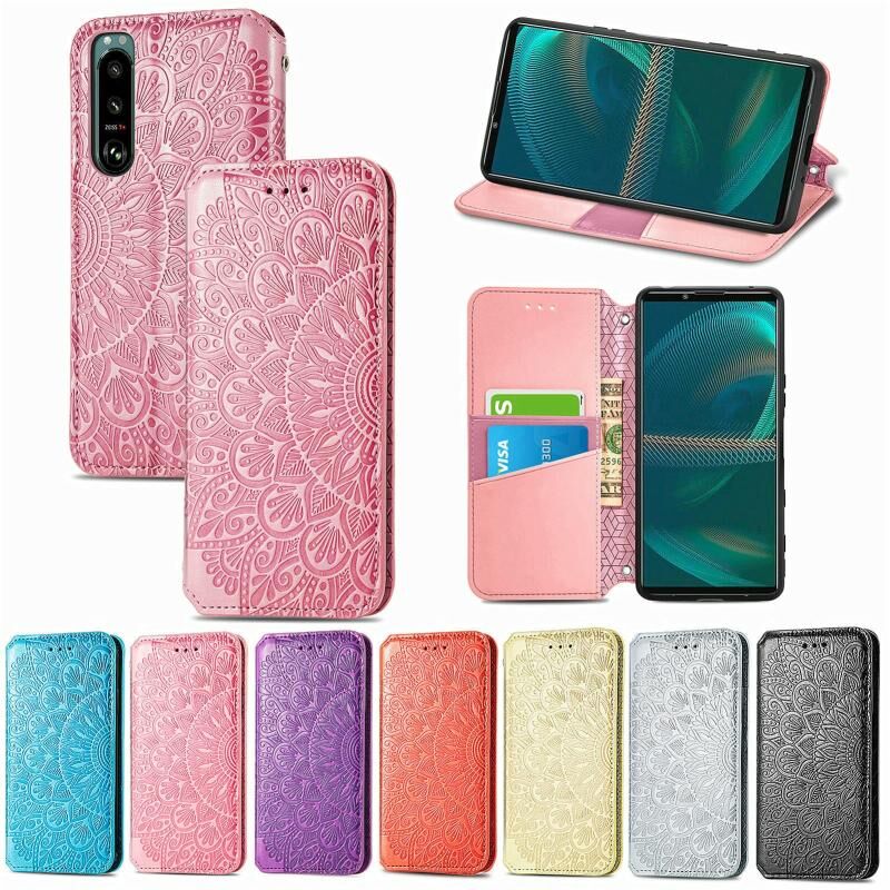 Για Sony Xperia 5 IV Blooming Mandala ανάγλυφη μαγνητική δερμάτινη θήκη τηλεφώνου (μωβ)