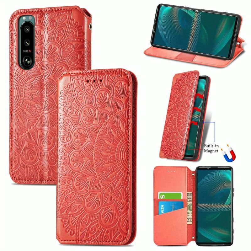 Για Sony Xperia 5 IV Blooming Mandala ανάγλυφη μαγνητική δερμάτινη θήκη τηλεφώνου (κόκκινο)