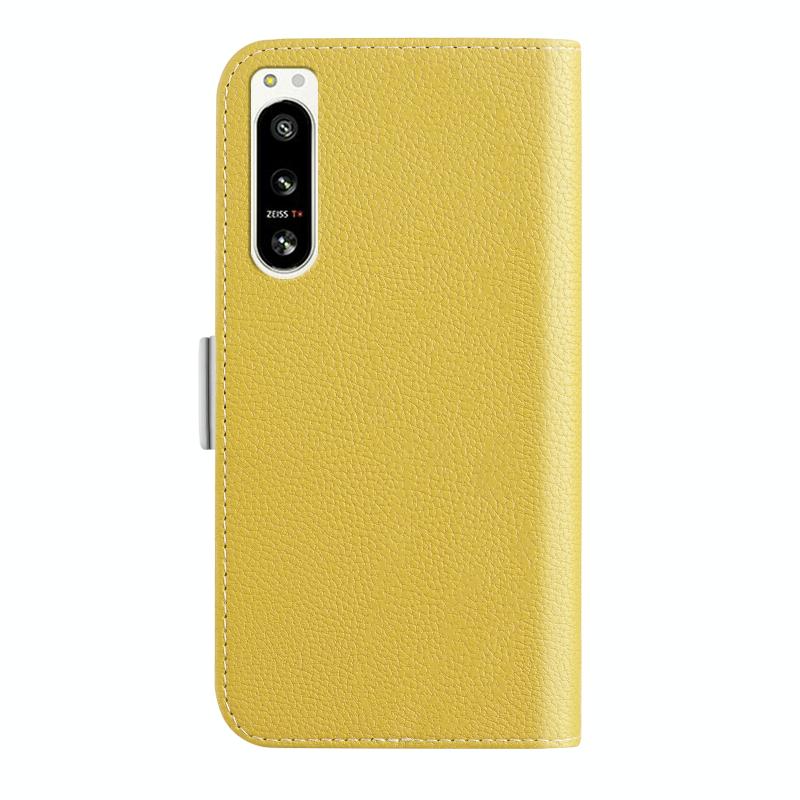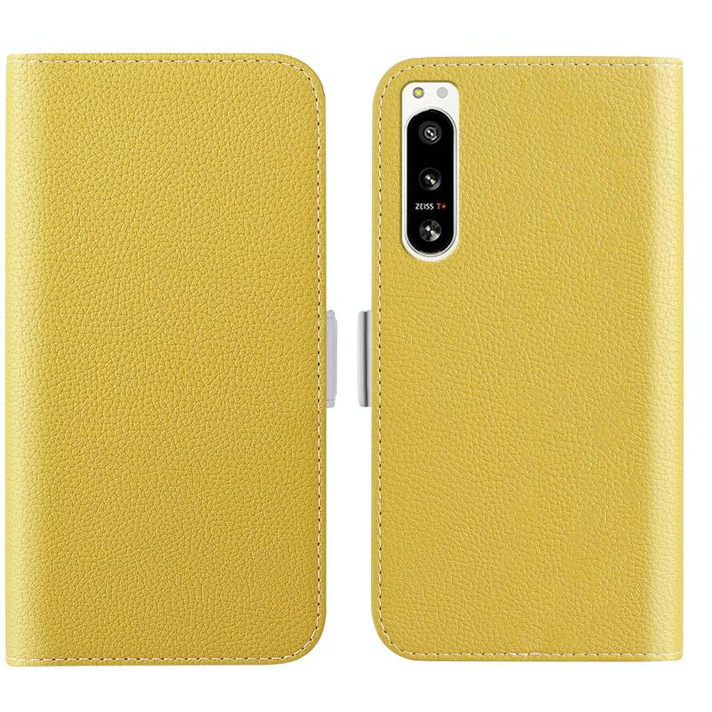 Θήκη τηλεφώνου από δέρμα με υφή λυτσί και χρώμα καραμέλας για Sony Xperia 5 IV (Κίτρινο)