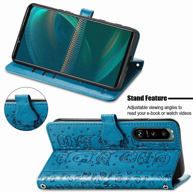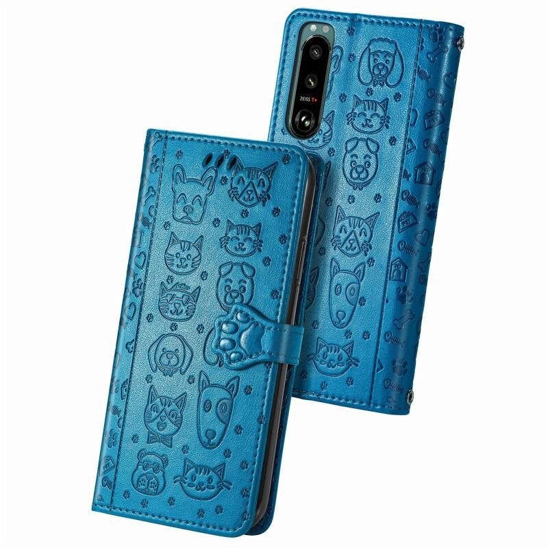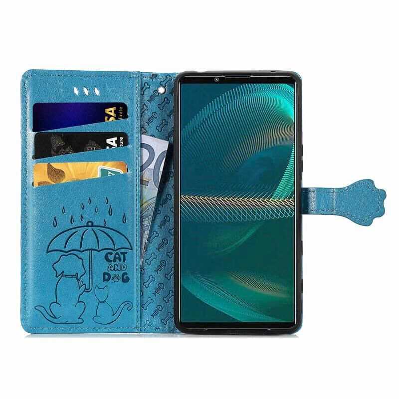 Θήκη τηλεφώνου από δέρμα με ανάγλυφο σχέδιο γάτας και σκύλου για Sony Xperia 5 IV (Κίτρινο)