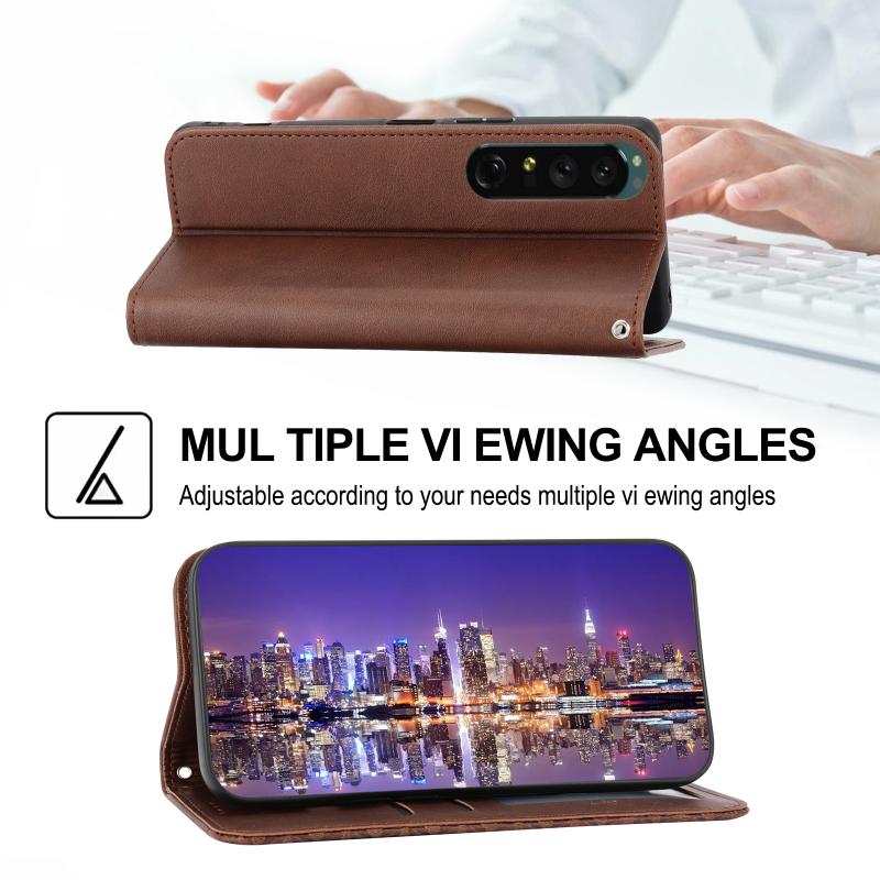 Θήκη τηλεφώνου από μαγνητικό δέρμα με υφή μοσχαριού Cubic Grid για Sony Xperia 5 IV (Κίτρινο)