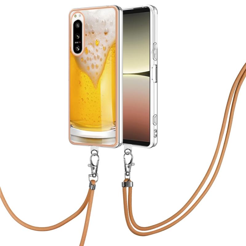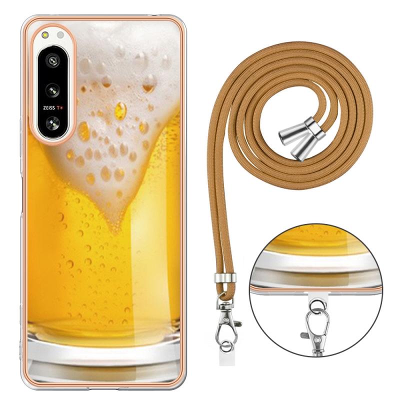 For Sony Xperia 5 IV Electroplating Dual-side IMD Phone Case with Lanyard(Draft Beer)