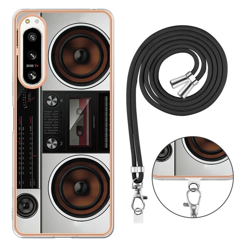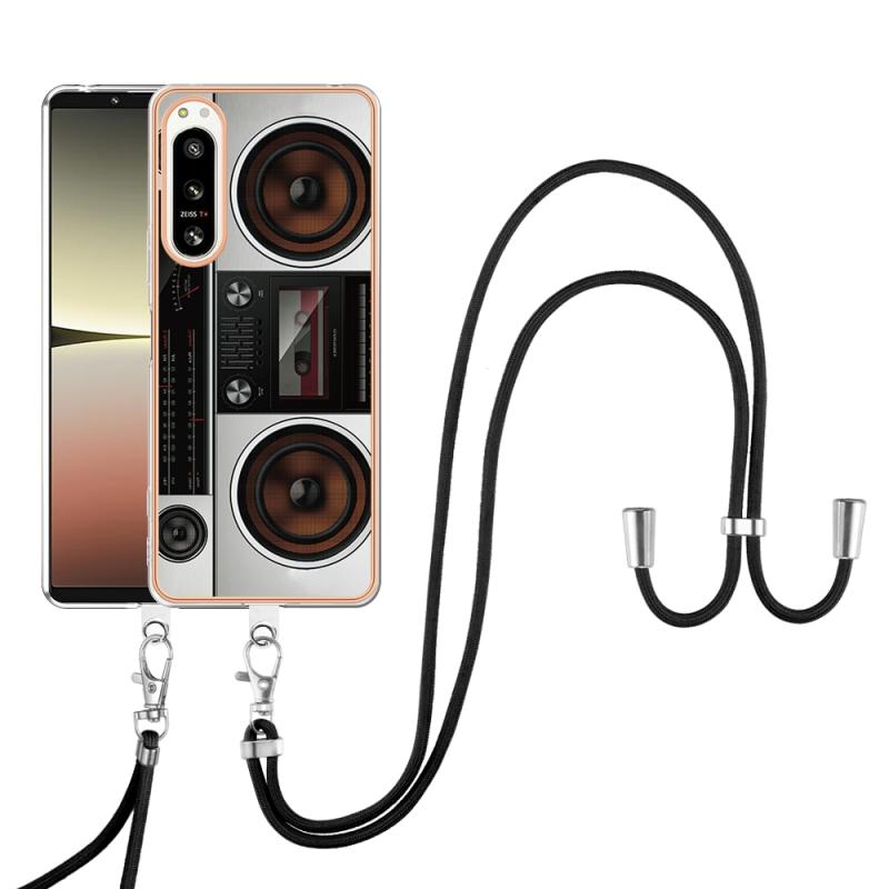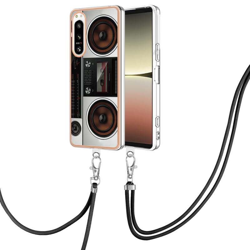For Sony Xperia 5 IV Electroplating Dual-side IMD Phone Case with Lanyard(Retro Radio)