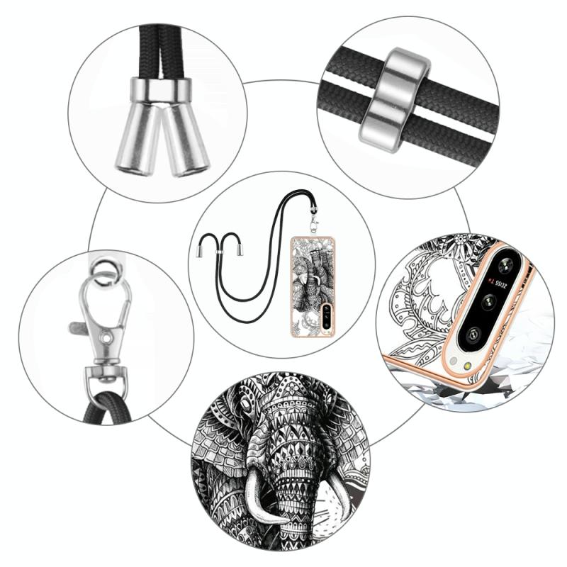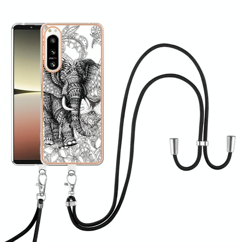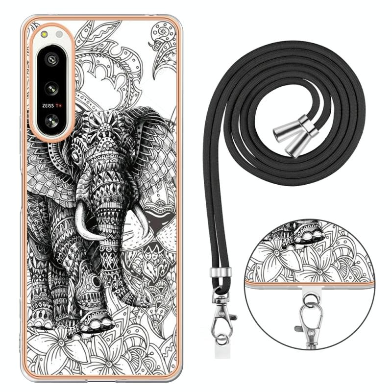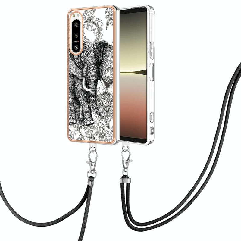For Sony Xperia 5 IV Electroplating Dual-side IMD Phone Case with Lanyard(Totem Elephant)