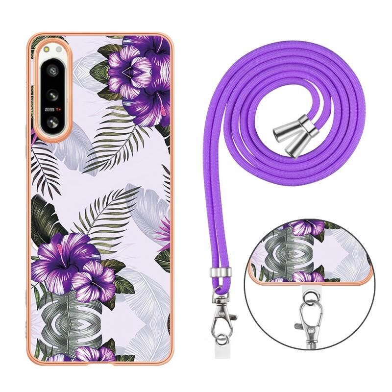 Θήκη κινητού τηλεφώνου Sony Xperia 5 IV με ηλεκτρολυτική επιμετάλλωση IMD TPU με κορδόνι (Ροζ Λέπια)