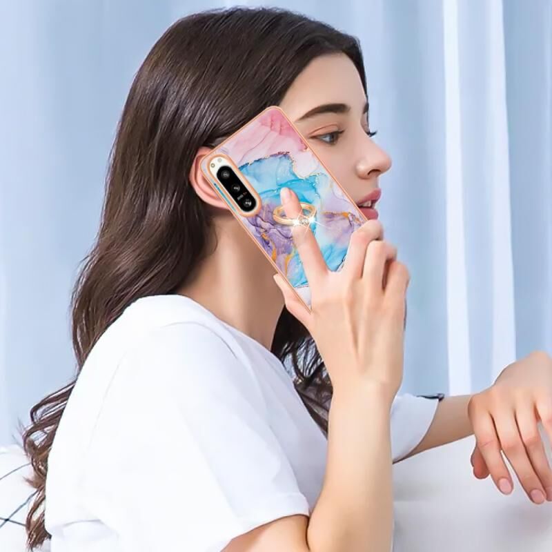 Θήκη κινητού τηλεφώνου Sony Xperia 5 IV με ηλεκτρολυτική επιμετάλλωση IMD TPU με δακτύλιο (Ροζ Λέπια)