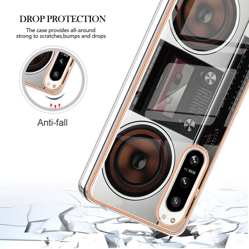 Θήκη τηλεφώνου για Sony Xperia 5 IV με ηλεκτρολυτική μαρμάρινη επένδυση IMD διπλής όψης (Ρετρό Ραδιόφωνο)