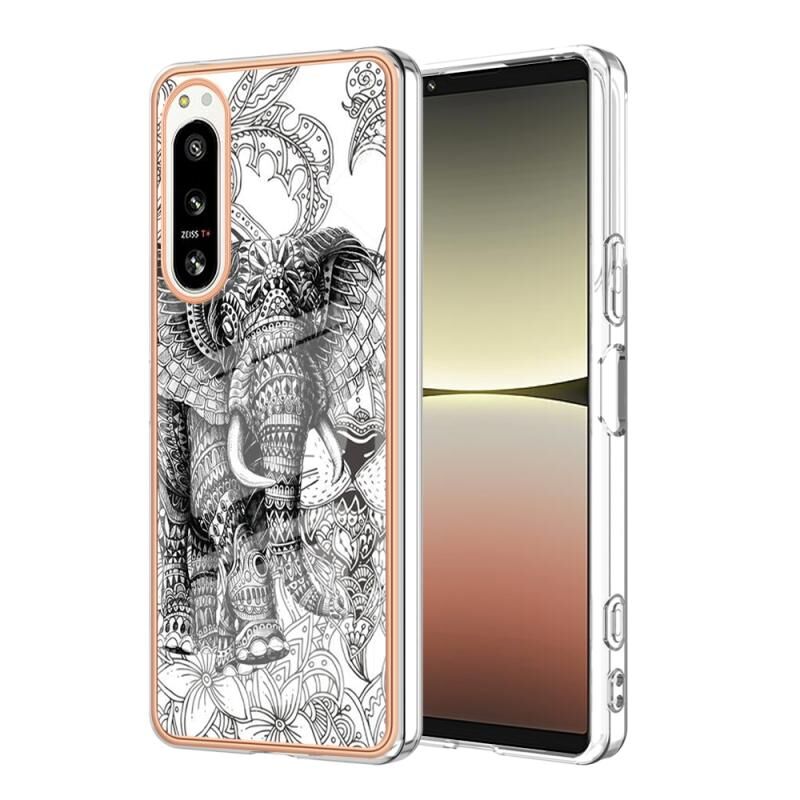 Θήκη τηλεφώνου για Sony Xperia 5 IV με ηλεκτρολυτική μαρμάρινη επένδυση IMD διπλής όψης (Totem Elephant)