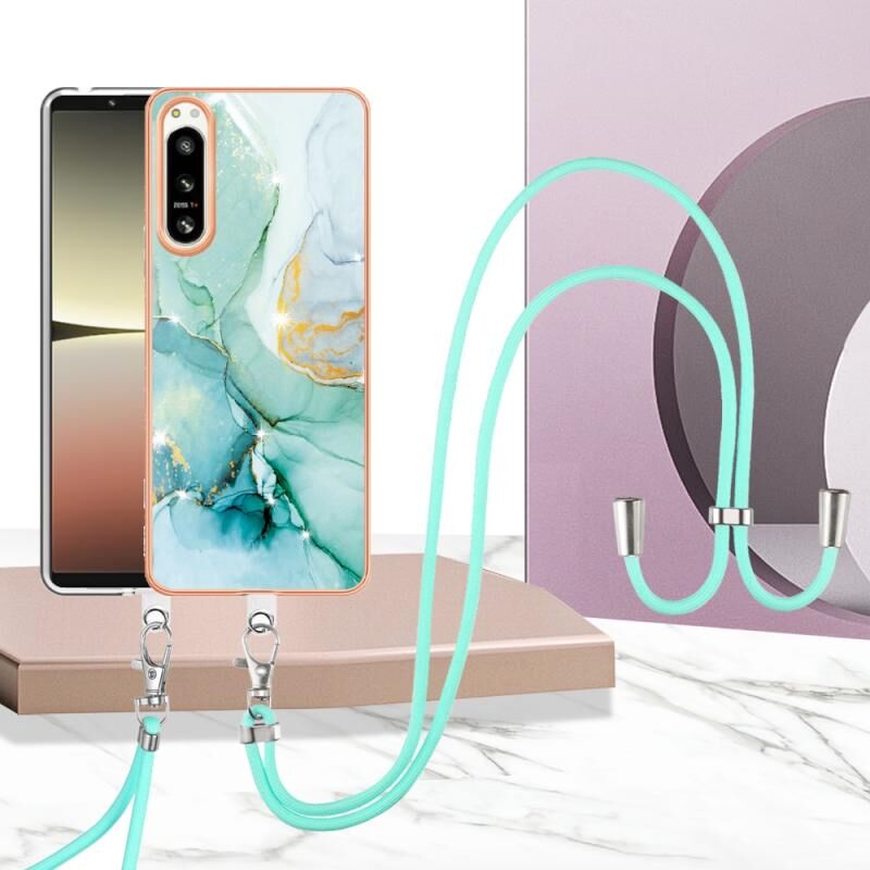Θήκη τηλεφώνου με κορδόνι για Sony Xperia 5 IV, με ηλεκτρολυτική μαρμάρινη επένδυση IMD διπλής όψης (Μωβ 001)