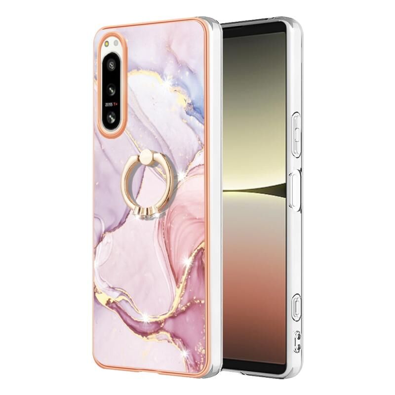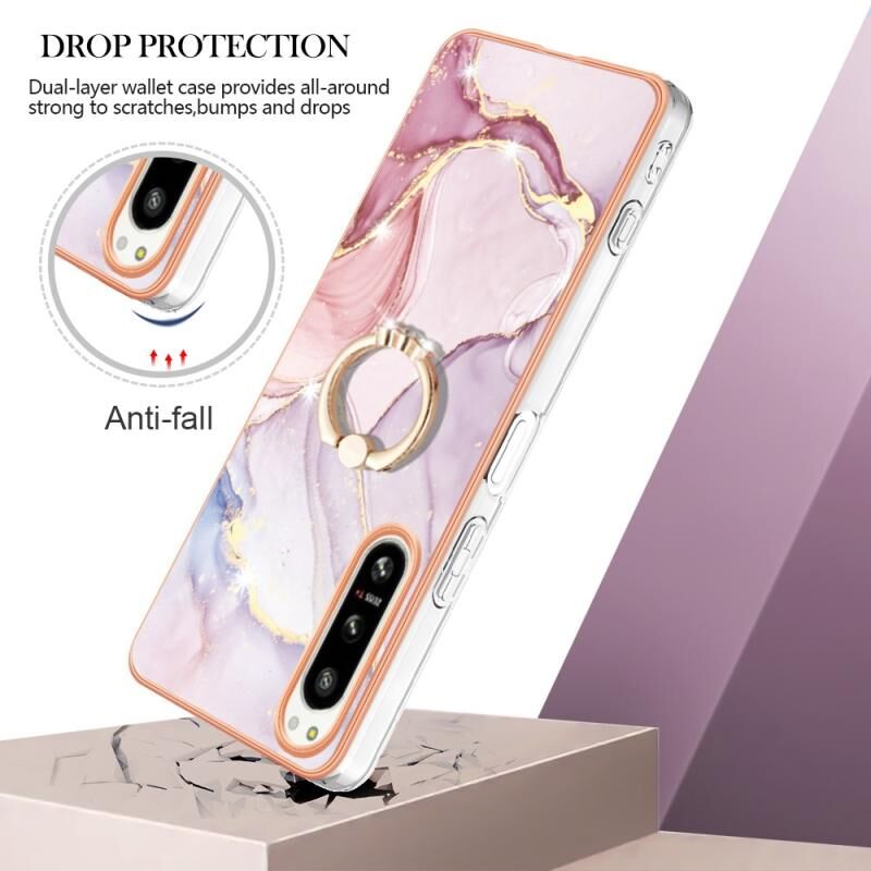 Θήκη κινητού τηλεφώνου για Sony Xperia 5 IV με ηλεκτρολυτική μαρμάρινη τεχνολογία IMD και δακτύλιο στήριξης (Μωβ 001)
