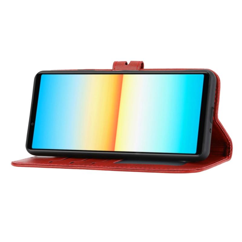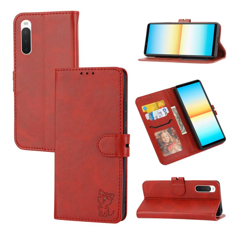 Θήκη τηλεφώνου από δέρμα με σχέδιο χαρούμενης γάτας σε ανάγλυφο για Sony Xperia 5 IV (Γκρι)