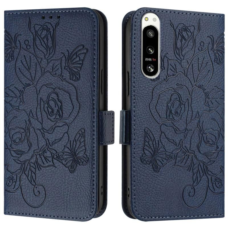 Για Sony Xperia 5 IV ανάγλυφο Rose RFID Anti-theft δερμάτινη θήκη τηλεφώνου (σκούρο μπλε)