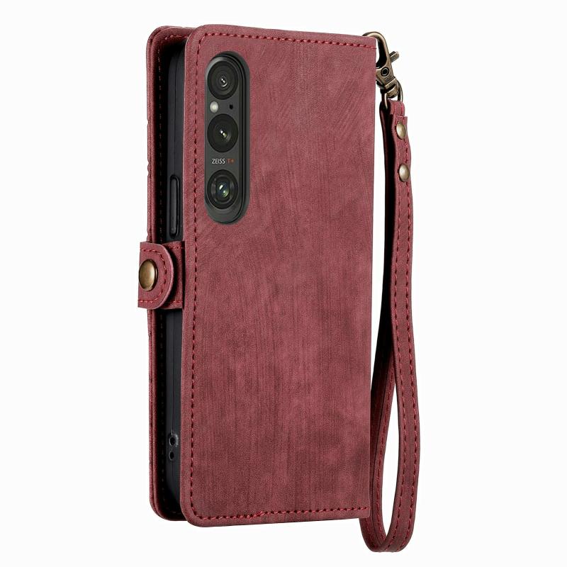 For Sony Xperia 5 IV Geometric Zipper Wallet Side Buckle Leather Phone Case(Red)