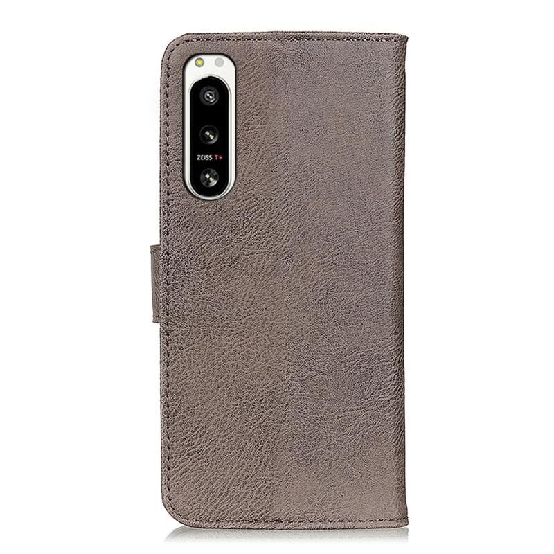 Θήκη τηλεφώνου δέρματος με οριζόντιο άνοιγμα και υφή δέρματος αγελάδας KHAZNEH για Sony Xperia 5 IV (Καφέ)