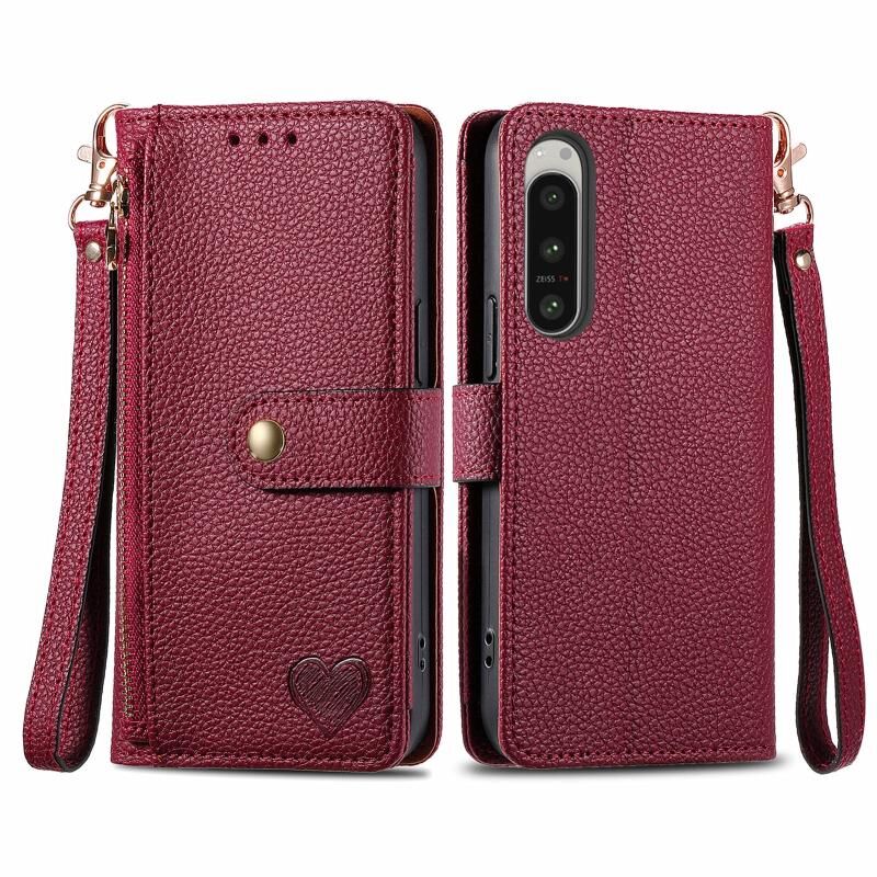 Για Sony Xperia 5 IV Love φερμουάρ Lanyard δερμάτινη θήκη τηλεφώνου (κόκκινο)