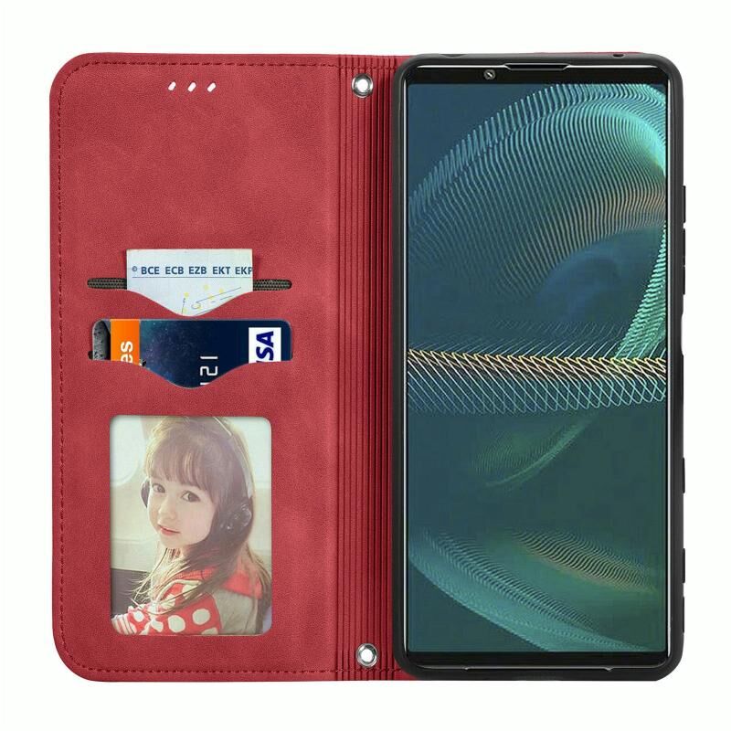 Για το Sony Xperia 5 IV Retro δέρμα αίσθηση μαγνητική δερμάτινη θήκη τηλεφώνου (κόκκινο)