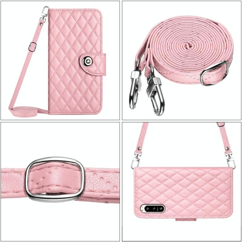 Για το Sony Xperia 5 IV Rhombic Texture Flip δερμάτινη θήκη τηλεφώνου με μακρύ κορδόνι (ροζ)