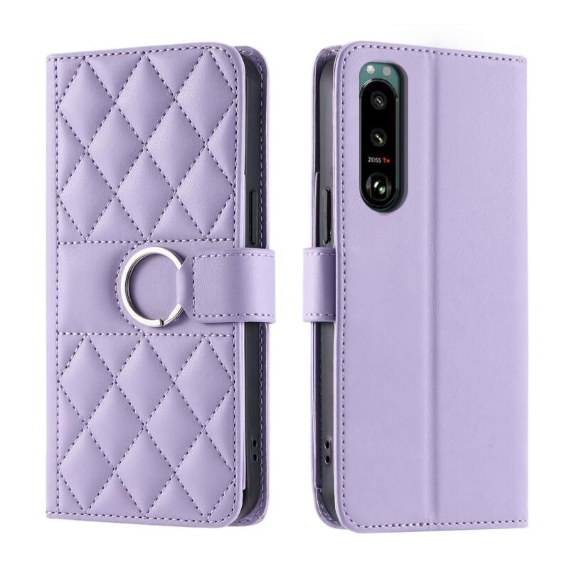For Sony Xperia 5 IV Ring Buckle Rhombic Leather Phone Case(Purple)
