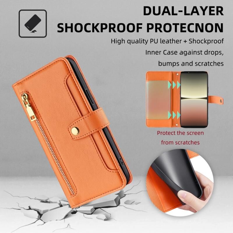 Θήκη τηλεφώνου δερμάτινη με φερμουάρ και σχέδιο προβάτου για Sony Xperia 5 IV (Μαύρο)