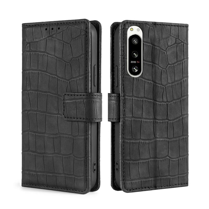 Θήκη τηλεφώνου δερμάτινη με μαγνητικό κούμπωμα για Sony Xperia 5 IV, αίσθηση κροκόδειλου (Καφέ)
