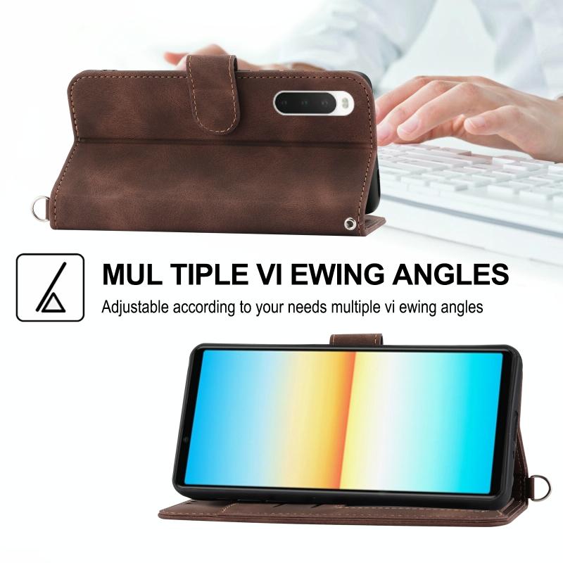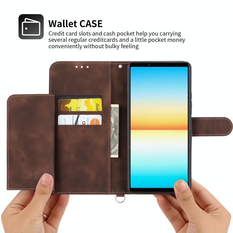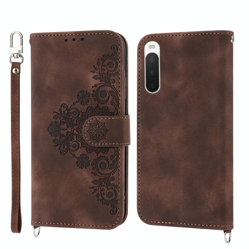Θήκη τηλεφώνου από δέρμα με ανάγλυφα λουλούδια και υφή δέρματος για Sony Xperia 5 IV (Καφέ)