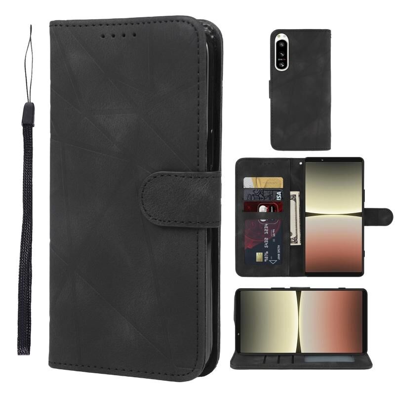 Για το Sony Xperia 5 IV Skin Feel γεωμετρικές γραμμές δερμάτινη θήκη τηλεφώνου (μαύρο)