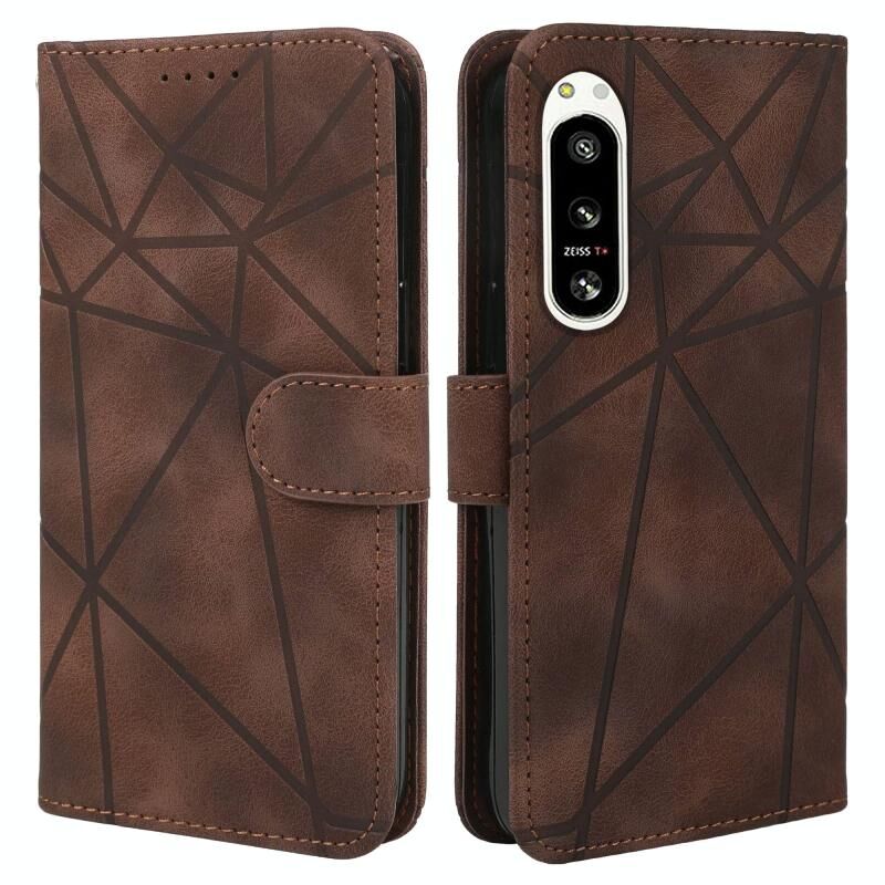 Για το Sony Xperia 5 IV Skin Feel γεωμετρικές γραμμές δερμάτινη θήκη τηλεφώνου (καφέ)