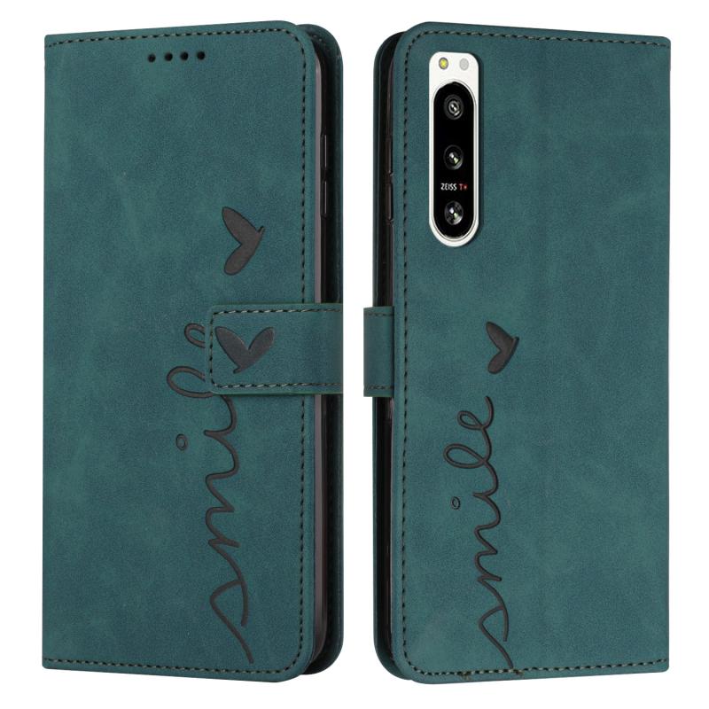 Θήκη τηλεφώνου από δέρμα με ανάγλυφο σχέδιο καρδιάς για Sony Xperia 5 IV (Μαύρο)