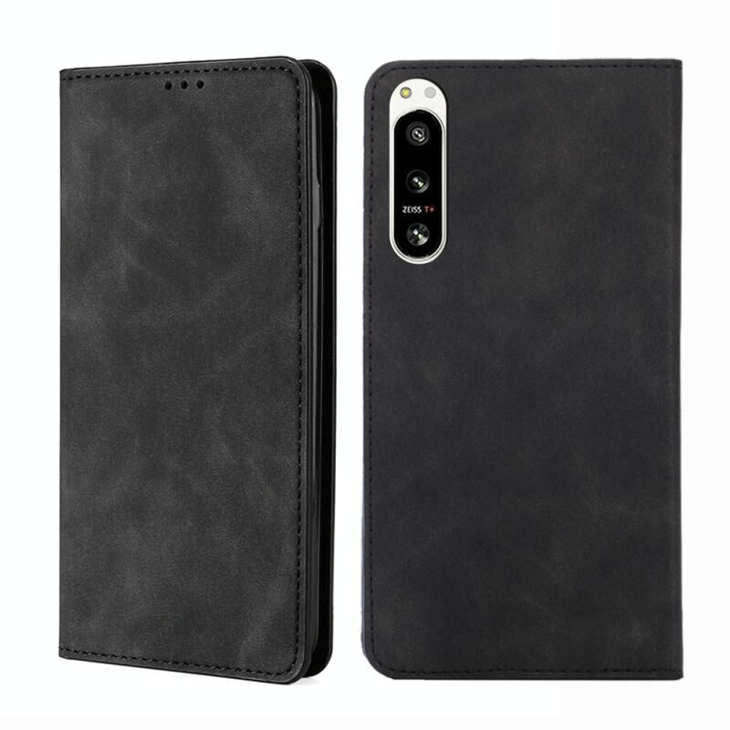 Για Sony Xperia 5 IV Skin Feel μαγνητική οριζόντια Flip δερμάτινη θήκη τηλεφώνου (μαύρο)
