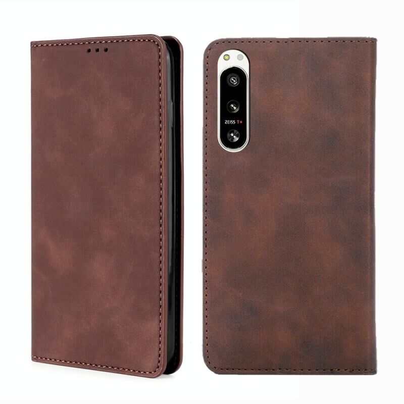 Για Sony Xperia 5 IV Skin Feel μαγνητική οριζόντια Flip δερμάτινη θήκη τηλεφώνου (σκούρο καφέ)